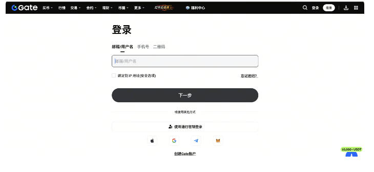 完成注册后,用户可通过多种方式登录 Gate 账户: