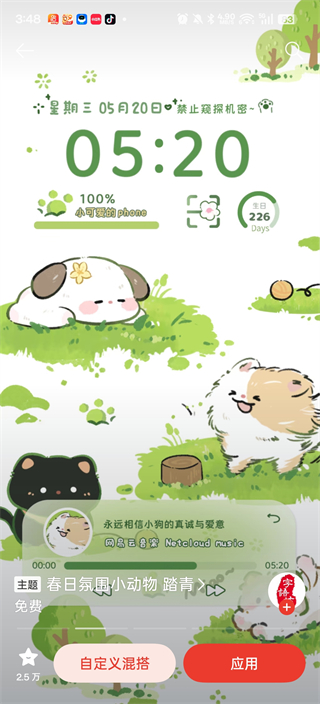 3、OPPO主题商店App支持自定义混搭不同主题元素,也能直接应用已下载壁纸,轻松完成个性化设置。