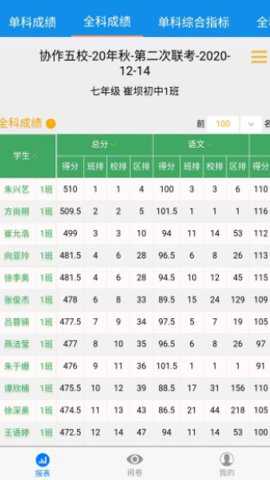 在成绩管理界面中,您可以选择查看某个班级或课程的学生成绩,也可以按照学生姓名或学号进行搜索。
