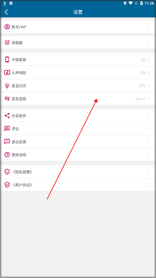 2、在设置界面中,找到“音色选择”功能选项,点击进入音色设置页面。