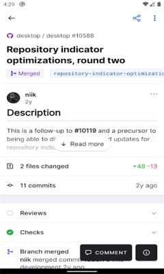 三、【身在何处,都能灵活办公】:移动端涵盖Review、Bug检查、合并Pull requests等常用操作,随时随地可开展开发相关工作。