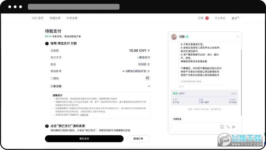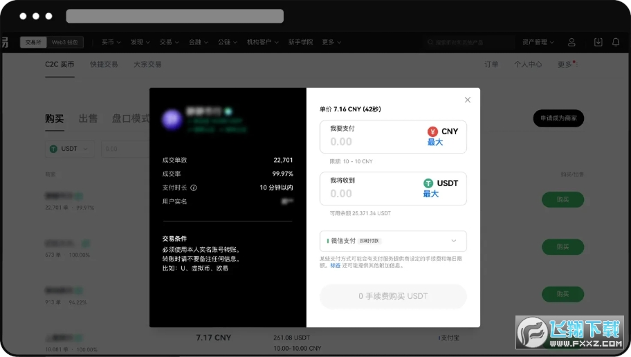 2. 选择可交易的商家进行购买 - 输入【购买的金额】 - 选择【支付方式】- 点击【0手续费购买】- 查看订单详情点击【确认】- 付款完成后点击【我已转账】- 商家收到款后放币