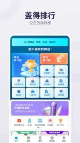 盖得排行是北京盖得排行信息科技有限公司打造的专业排行榜软件,用户可以在这里看到各种类型的商品排行,买东西不用再纠结,快速查看迅速分辨商品优劣。除了商品还有各地餐馆榜,让用户轻松不踩坑。