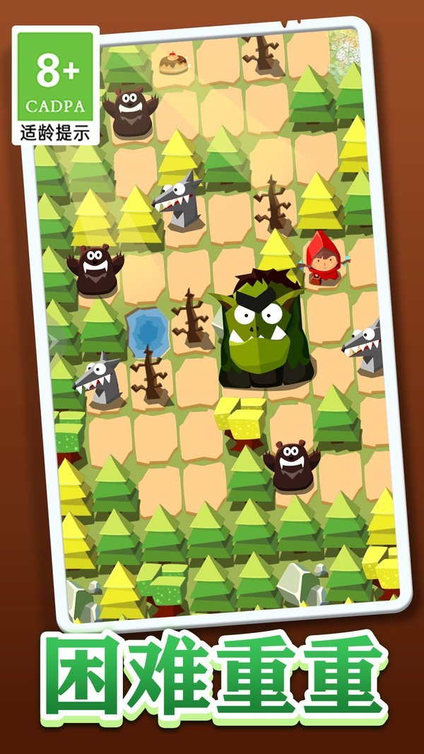你的任务是帮助小红帽走出森林,躲避大灰狼的追捕,尽快回到奶奶身边。