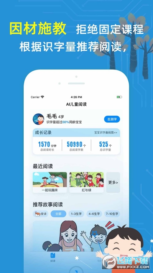 ●AI智能算法,先测字后阅读,根据识字量推送专属趣味故事