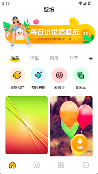 1、 海量壁纸资源库:涵盖数十种分类,包括风景、人物、节日、动漫等,内容持续更新,风格多样,便于快速找到心仪画面。