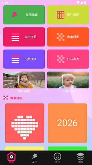 1、首页提供了丰富的图片编辑、拼图功能