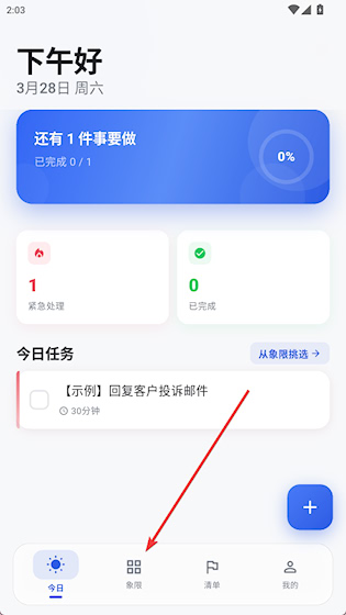 1、打开应用,点击底部导航栏的“象限”