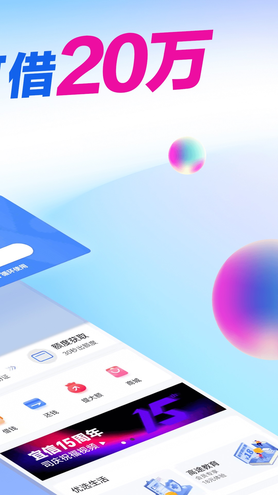 一款安全靠谱的贷款平台宜享花app,借款方便快捷,只需身份证注册就行,放款时间快,快速到账,门槛低,最重要的是利息低,没有抵押,经常使用的话,用户信用提高,费率减少,额度还会提高。一次申请,循环使用;持牌借款平台,科技护航,实力雄厚。