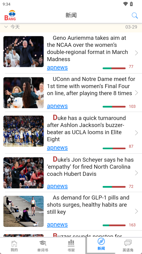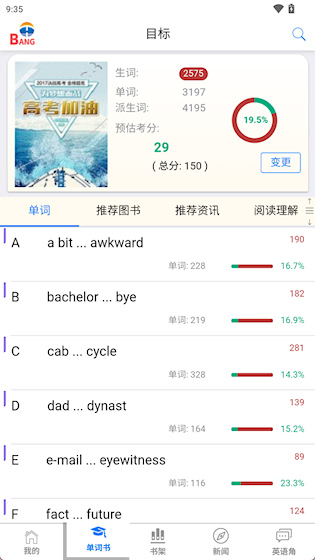 5、 多考试覆盖:针对主流英语考试词汇范围,定向推送相关书籍与新闻素材。