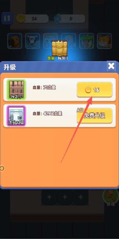 3、然后我们还需要使用金币去升级我们的门,才可以更好的进行防御的。
