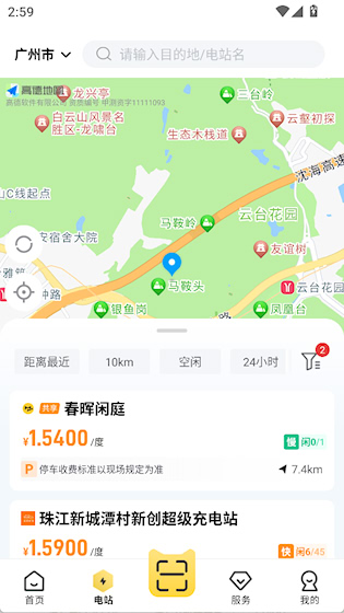 1、在首页可以看到附近电站的价格、距离等信息