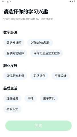 1、在初次运行软件时,你可以优先选择自己感兴趣的内容进行学习。