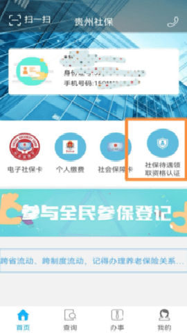 下载安装“贵州社保”APP,输入账号密码登录进入服务首页,点击待遇资格认证。