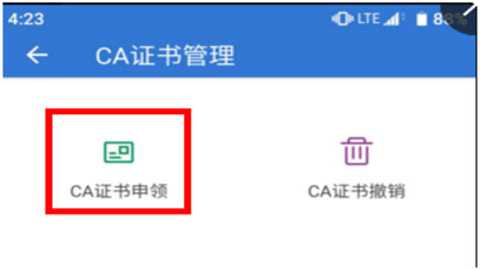 点击首页中的“CA证书管理”,进行CA证书申领操作,如图1.3、图1.4。