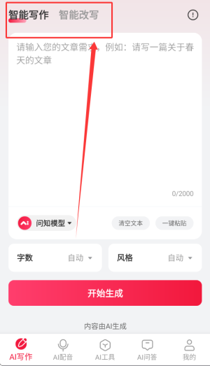 2、写作板块提供智能写作辅助与内容自动改写功能,帮助用户高效生成文本。