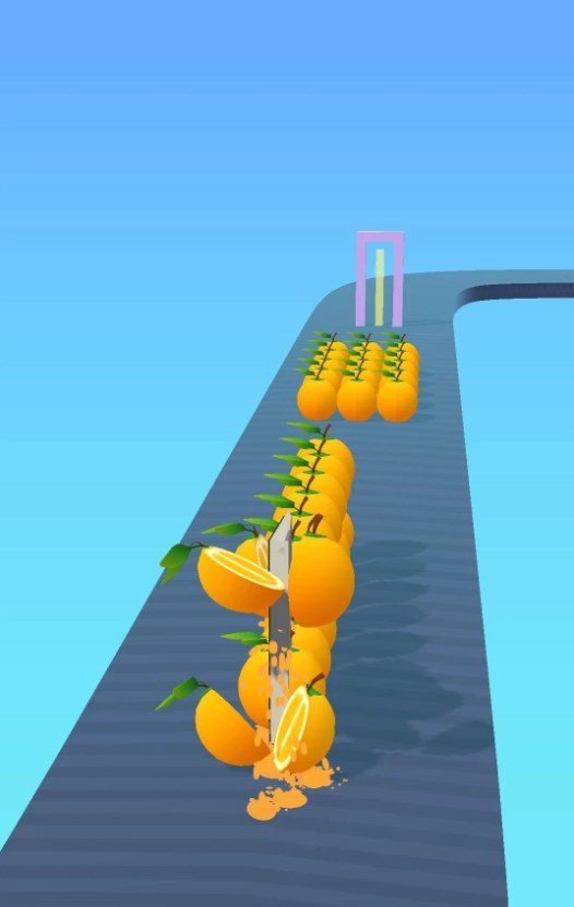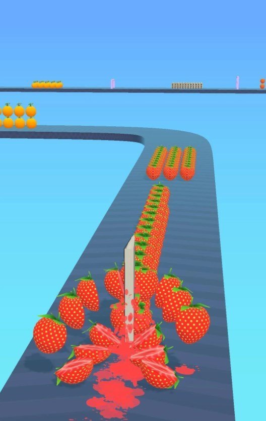 2.在赛道上有非常多形态各异的水果,每一个水果还有不同的加成,只要将它们切开就可以获得相应的加成。