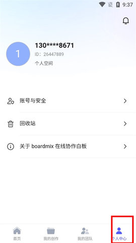 1、进入BoardMix手机版的个人中心,点击“账号与安全”;