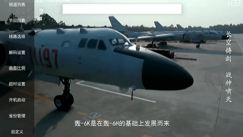 2.点击屏幕左边,可以看到左侧会出现频道列表、节目回看、线路选择、画面比例等板块内容,在这里小编以点击频道列表为例。