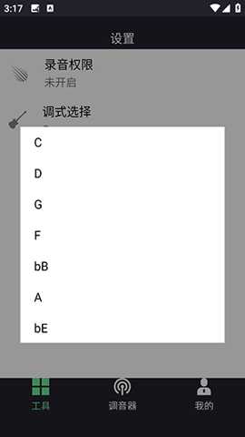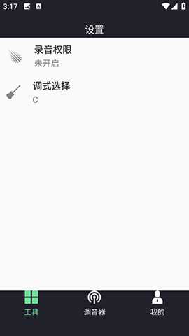 3、进入设置界面,可查看【录音权限】状态,还能进行【调式选择】,满足不同调音需求。