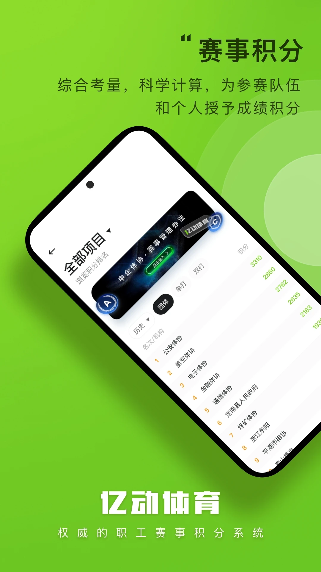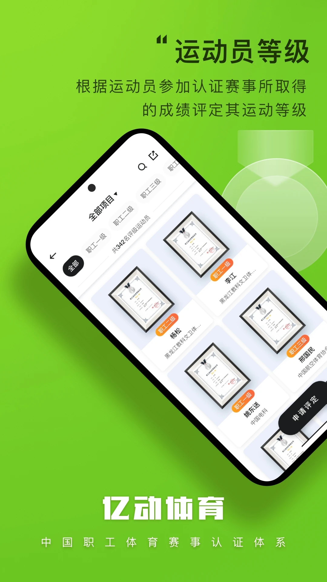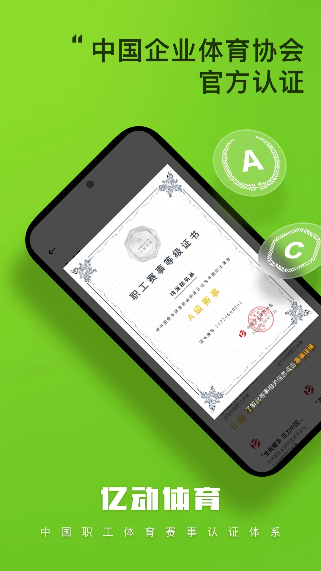 亿动体育官方正版最新版是中国企业体育协会官方打造的线上服务平台,在国家体育总局群体司的支持与指导下,聚焦我国职工体育发展需求,搭建起科学、权威的职工体育赛事服务体系,为赛事组织、运动员参赛提供全方位线上支持。