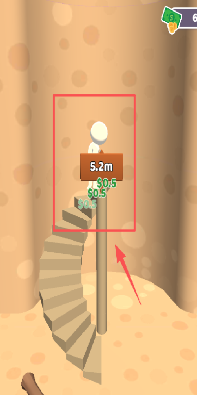 2、看白色小人正沿螺旋楼梯往上爬,当前高度5.2米,可继续让它向上攀登。