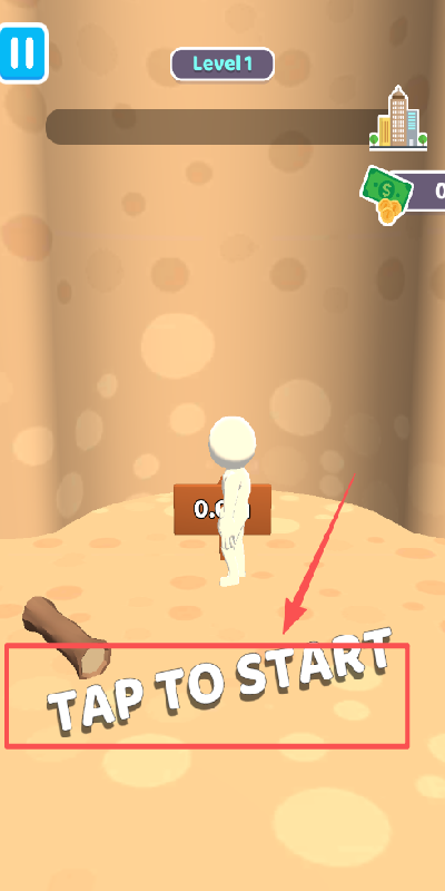 1、看游戏开始页,点右下角红色箭头指向的TAP TO START字样,就能开启第一关爬楼战。