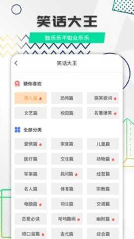 2. 简单易用:笑话全集界面简洁明了,操作方便快捷。用户只需打开应用即可随时浏览最新最有趣的笑话。