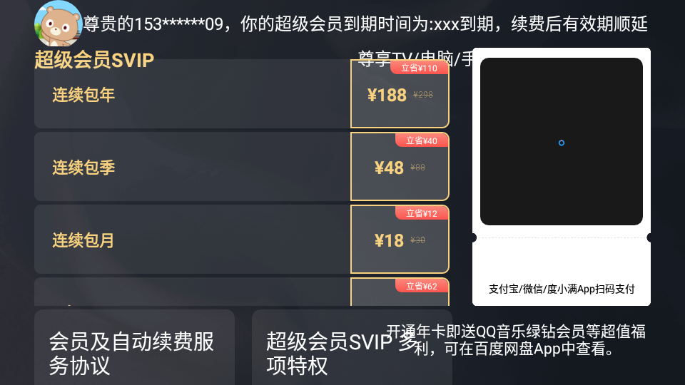 百度网盘车机版是一款是官方版本的软件,并不是特殊版,所以没有突破限制,该要会员的还是要会员!但是呢,这款TV端的软件安在电视上还是挺不错的,想要看的影shi可直接在网盘里打开观看。