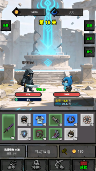 1、创新放置进阶机制,角色自动战斗积累资源,离线期间仍可持续获得关卡收益。
