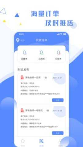 2、及时推送,维修小哥平台免费为大家进行服务订单推送,让师傅查看订单信息;