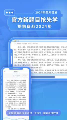 1、普通话水平测试(PSC)是一款模拟测试软件以2024年普通话考试新大纲及普通话学习标准编写真题。