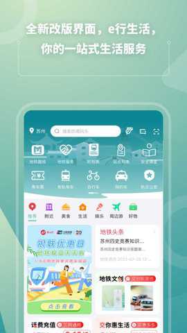 1、除了基本的出行服务,苏e行还提供了附近地铁商业功能。