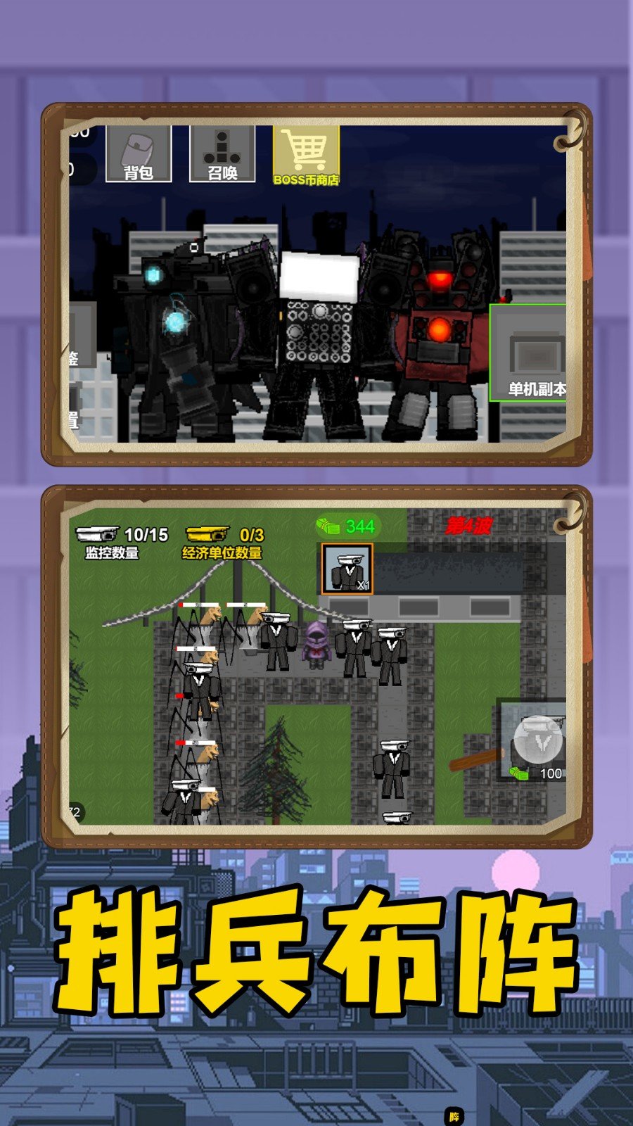 入侵者战争是一款马桶人系列的策略塔防游戏,玩家需要建造自己的马桶人炮塔守卫家园,根据敌人的种类来布置防御,游戏提供了多种模式,还有大量的关卡,搭配监控数量和经济单位数量可以帮助你构建更巩固的防线,一起来挑战更高的分数。