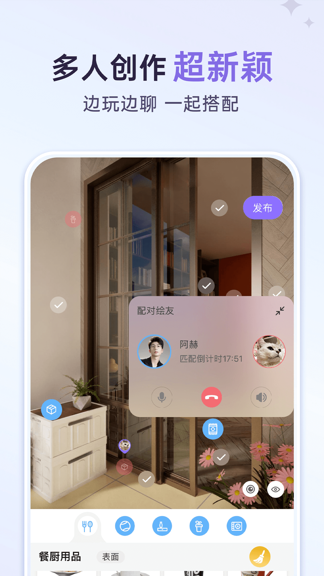 来绘支持多人搭配,如果觉得一个人搭配太无聊,你可以上来绘通过随机匹配或者定向邀约的方式,找到志同道合的美学搭子,边开语音交流边,一起搭配出两个人都满意的作品!
