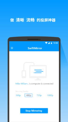 简单易用的投屏App,无须USB线,就能实现手机屏幕一键镜像到电脑,开会不用愁,一边操作PPT一遍演示,还可以手机画面和电脑画面一起演示,轻松展示设计效果给大伙看。
