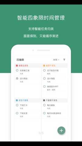 4. GTD工作流程支持:该应用采用了GTD(Getting Things Done)方法论,在任务处理过程中引导用户按照收集、处理、组织和执行四个步骤进行,以最大限度地提高工作效率。