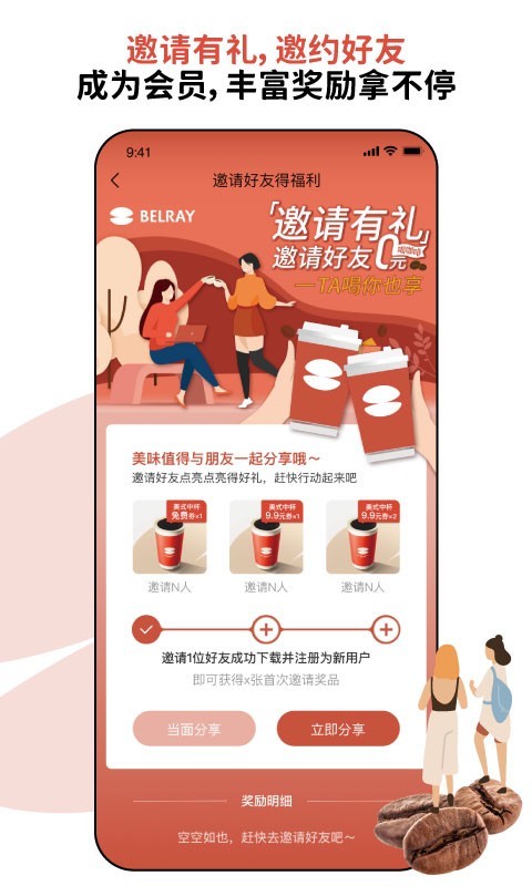 邀请有礼:邀请好友成为新用户,大家一起0元喝咖啡~