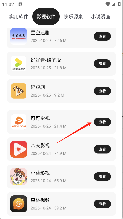 2、进入软件首页,可看到详细的软件资源分类,包含影视类、小说类、音乐类等。