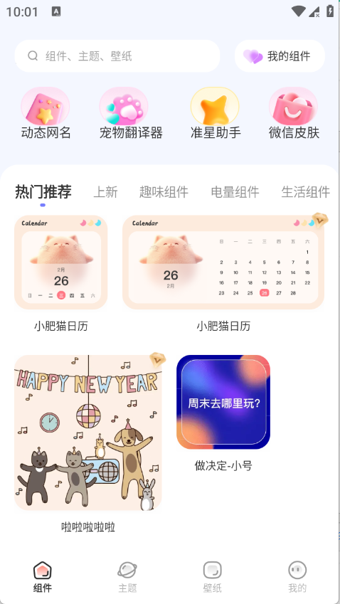 2、多功能组件:软件内置多种热门组件,包括桌面天气壁纸、电量壁纸、纪念日提醒等,助力日常管理。