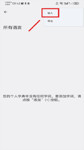 6、最后选择导入并在手机文件中选择你要带入的词库文件进行导入即可