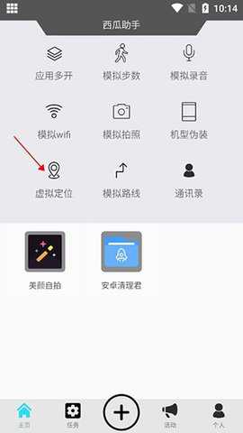 1在本站软件,点击中间的加号,添加需要的虚拟定位的应用;
