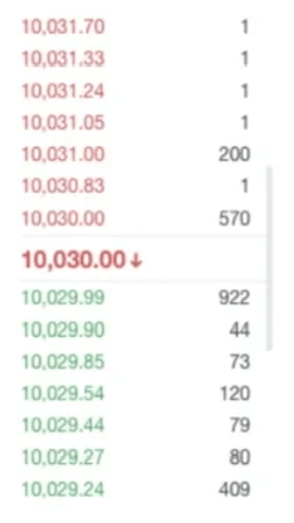下单后,系统将会自动开始进行定时的分批委托,假设当前时刻的盘口情况如下图: