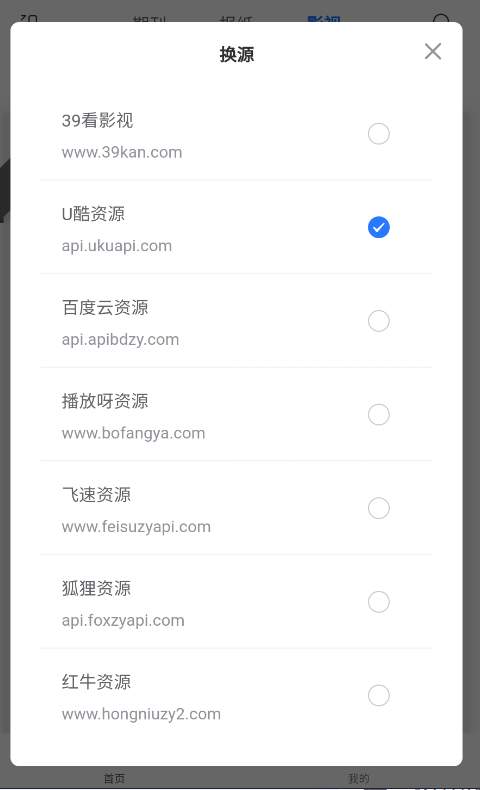 4、在换源界面可选择期刊、报纸或影视栏目,每个栏目均可独立进行换源操作。