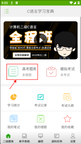 2、选择计算机二级相关选项后,点击页面中的“真考题库”,即可开展真题训练。