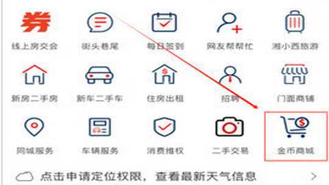 打开掌上湘西APP首页,点击进入【金币商城】