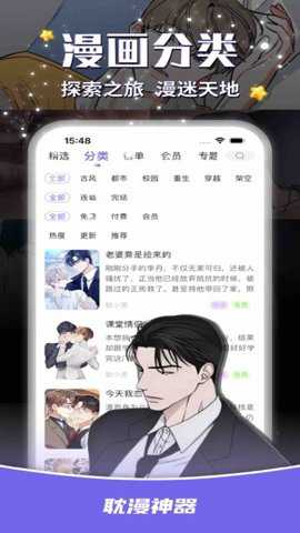 1、在耽漫神器上用户可以找到各种题材的耽美漫画,如年下攻、诱受、ABO、财阀、重逢、强强。