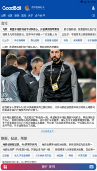 《GoodBall》是一款专为球迷朋友们打造的专业足球软件,汇聚超多足球资讯、全球赛事直播、专业解说、球星数据及场下数据分析,为足球爱好者带来全方位的看球、聊球、懂球体验。软件兼顾实用性与趣味性,不仅能让球迷实时掌握赛事动态,还能实现与顶级球星零距离互动,是足球迷不容错过的专属看球工具。