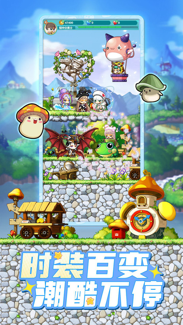 1、正版授权,还原了冒险岛的经典元素,同时加入了挂机、宠物等新玩法,既有情怀又有创新。