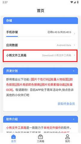 1、下载好app后,点击进入,在首页中选择【小熊文件工具箱】。